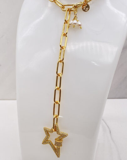 Añadir a la lista de deseos Añadir al carrito COLLAR CADENA GOLD $61.990 Collar cadena 60cms largo mas estrella en micropave y mini nPerlas de rio bañado en Oro de 24k. Añadir al carrito